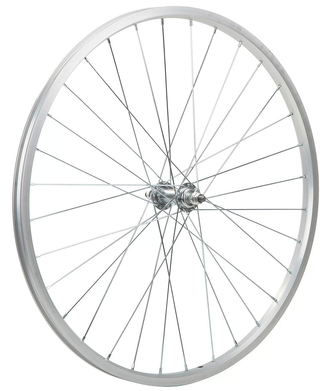 Колесо переднее в сборе, готовое к установке. Имеет стандартный размер 26". Подойдет для начального уровня MTB, городских, гибридных, складных и прогулочных велосипедов. Рассчитано для установки в вилки с шириной меду перьями 100 мм. (O.l.d). Втулка Shangfu SF A03F оснащена сборным стальным корпусом с 32 отверстиями, насыпными подшипниками. Ось выполнена из стали на фиксацию гайками. Спицы стандартные стальные 2 мм. Обод начального уровня, алюминиевый с одной стенкой, с тормозной дорожкой, не пистонированный. Оптимальным сочетанием будут покрышки с шириной от 1,75 до 2,25", поддерживает колесо оптимальную нагрузку до 100 кг. Выпускаются колеса в серебристом цвете. Стоит заметить, что колесо полностью готово к установке, оно собрано и протянуто. В сборку не входят: ободная лента, камера и покрышка.