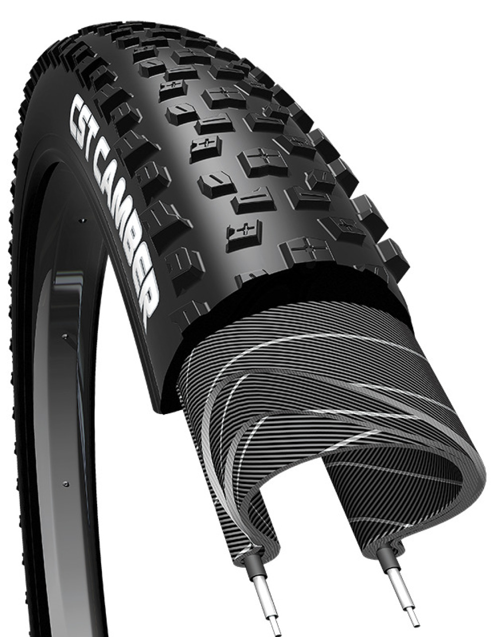 Одно из лучших и эффективных предложений бренда CST - покрышка Camber C1671. Это скоростное и цепкое решение для агрессивных MTB велосипедов, динамично передвигающихся по различным условиям внедорожных трасс. Оптимально подойдет для направлений Trail и Cross-Country. Покрышка обладает двойным компаундом с выраженным, частым и цепким протектором на боковой плоскости, центральная часть выполнена в виде цепких и широко расставленных зубцов. Данное решение считается лучшим при агрессивном катании по гравийным и грунтовым трассам. Протектор располагает к отличному контролю при маневрировании и торможении, при этом обладая оптимальным показателем наката. Хорошо раскрывается потенциал покрышки в сухую погоду на рыхлой поверхности. Антипрокольный слой из пенополистирола, выполненный по технологии Exceptional Puncture Safety (EPS), позволяет покрышке сохранить высокий показатель маневренности и мягкости, при этом проколы и порезы на рабочей плоскости ей не страшны. Совместима с колесами 29", имеет актуальную ширину 2.25", располагает к установке как спереди, так и сзади. Установка возможна только с камерой. В своем оснащении имеет складной, кевларовый корд, плетение 60 TPI, держит предельное давление 65 PSI и обладает сравнительно низким весом в 665 грамм.