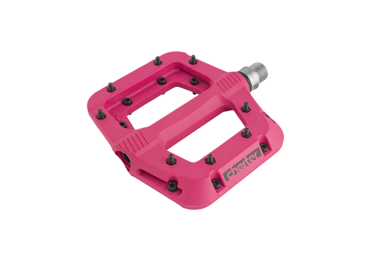 Добрый день! Данные педали Race Face Chester имеют одну комплектацию только с металлическими шипами и скосом платформы. Остальные педали, которые не соответствуют фактическому товару, отображают только варианты цветов.