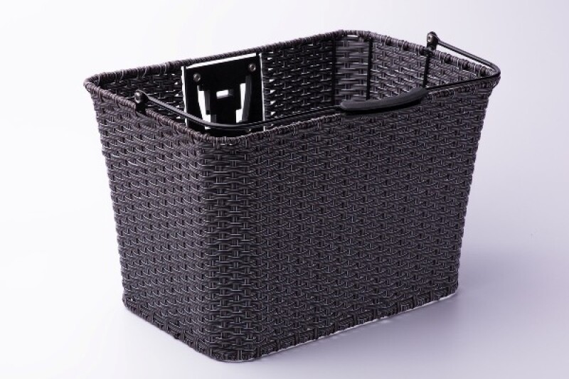 Плетёная корзина с удобной ручкой для переноски и с креплением. Оптимальный размер для поездок за покупками и других нужд.