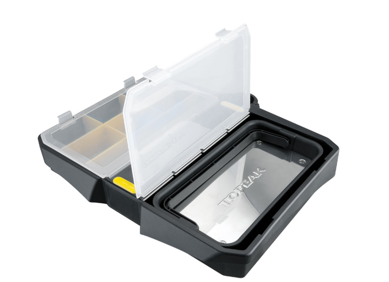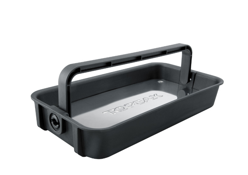 Магнитный поддон Magnetic Tool Tray от производителя топовых инструментов и аксессуаров Topeak - специальный инструментальный лоток для фирменных ремонтных стоек. Предназначен для крепления на верстаки и ближайшие металлические поверхности и комплектуется удобной ручкой для переноски и фиксации на ремонтных стойках. Позволяет разместить под рукой нужный комплект инструмента и запчастей, обладает магнитной подложкой. Благодаря такому незамысловатому аксессуару можно сильно оптимизировать организацию рабочего пространства, процессы и экономию времени.