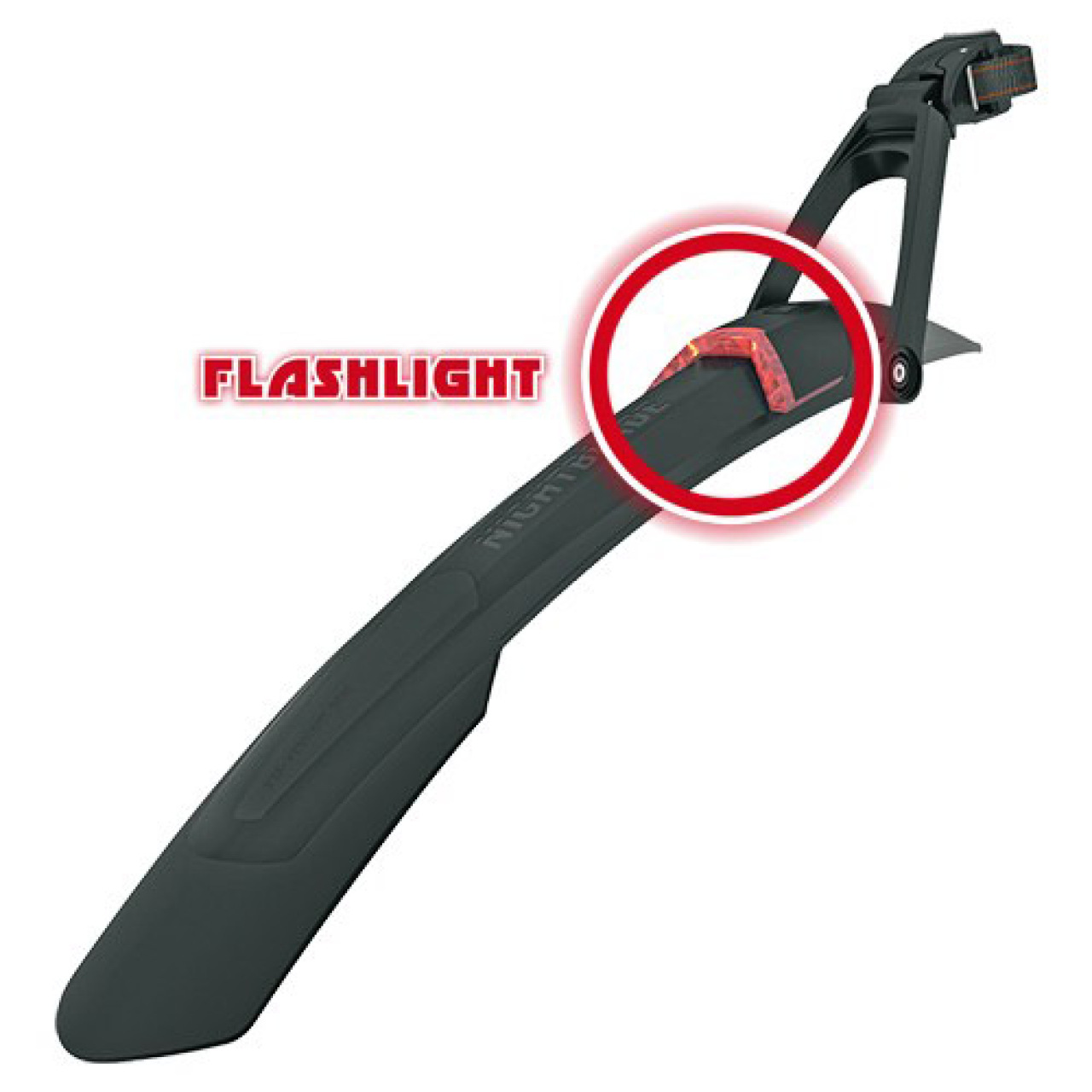 Прогресс не стоит на месте и уже известная во всем мире немецкая компания SKS выпустила обновленную модель заднего крыла SKS Nightblade Flash 27,5"-29". Уникальным это крыло делает то, что Вам не нужно больше покупать задний габаритный фонарь, он встроен в корпус данного крыла. Время работы габаритного фонаря составляет до 7 часов, а зарядка всего 1 час. Корпус крыла сохранил свою гибкость и прочность. Материал - композитный гибкий пластик со вставками из термопластичной резины. Крыло прекрасно подойдет для любой модели велосипеда, благодаря проверенному временем креплению на подседельный штырь. Широкий профиль крыла обладает прекрасной защитой от воды, грязи и пыли. Данную модель можно сочетать с моделями передних крыльев: SKS ShockBlade II, SKS ShockBlade Dark, SKS ShockBlade.