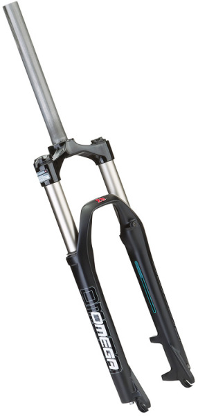 Вилка RST Omega 26, 1-1/8" для безрезьбовой рулевой колонки, амортизационная пружинная, ход 100 мм, предварительная регулировка сжатия, блокировка сжатия Lock-Out, алюминиевая корона шир. 130 мм, ноги диам. 32 мм, штаны из магниевого сплава, с креплением для дискового (Postmount) тормоза, под ось втулки 3/8"