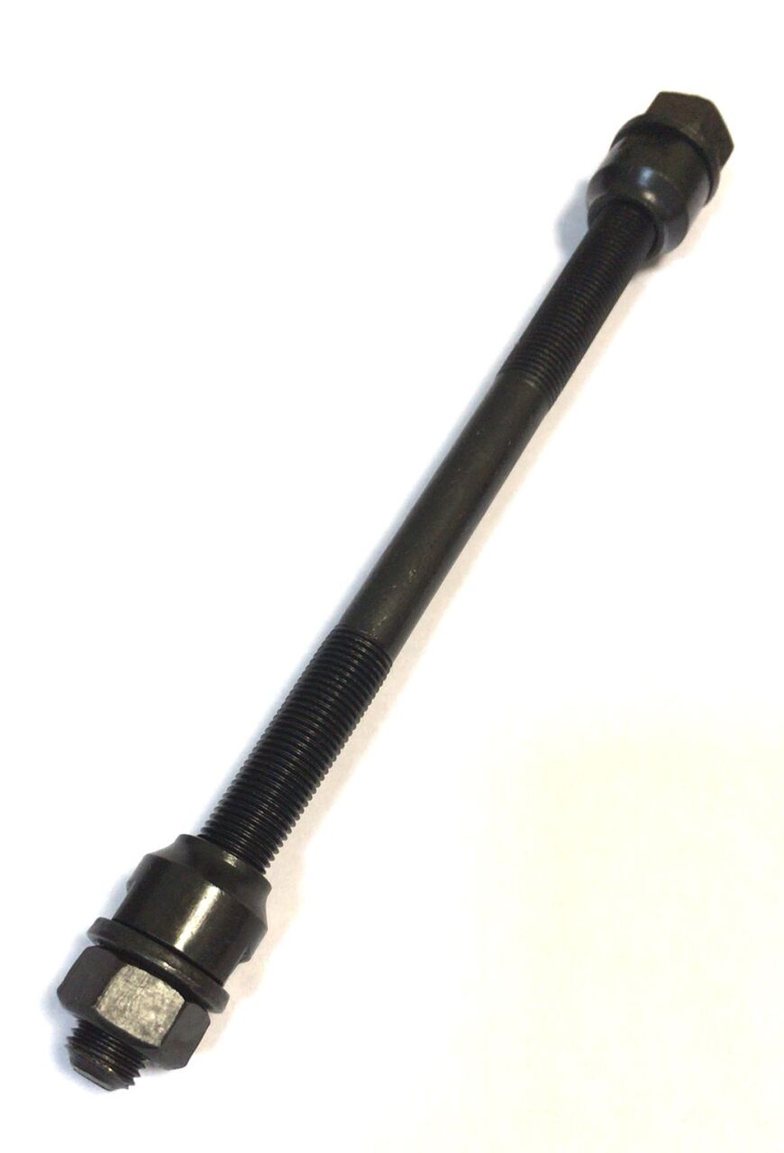 Универсальная ось USport в сборе для ремонта и обслуживания задних втулок. Ось имеет размер 3/8"х170 мм, поставляется вместе с конусами, шайбами, контргайками, все выполнено из прочной Cr-Mo стали. Рассчитан комплект на рамы с дропаутом 10 мм и OLD до 135 мм. В продажу поступает без подшипника и смазки, без фиксирующих гаек. Подбор оси, совместимость конуса, подшипника и ширины оси, способ установки, использование смазок рекомендуем вести строго по мануалу детали производителя или через специализированные веломастерские.
