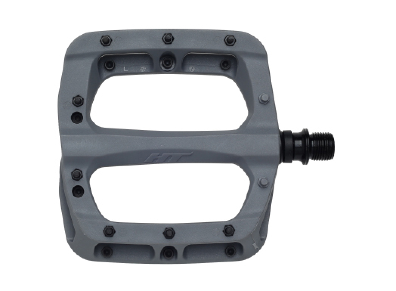 HT PA03A - недорогое и надежное решение для активного катания в MTB дисциплинах с постоянными прыжками и жесткими приземлениями. Станет отличным вариантом для для любителей трейла, фрирайда, дёрта и слоупстайла. Корпус педалей выполнен из крепкого нейлона. Собрана с использованием двух промышленных подшипников и втулки скольжения, что дает легкую плавность вращения и высокую устойчивость к влаге, пыли, грязи, ударным нагрузкам. Корпус фиксируется на Cr-Mo ось, выполненную с CNC обработкой и имеющую стандартную резьбу 9/16". Вес пары 345 грамм, средняя высота профиля, площадка размером 107 х 105 мм, 4 монолитных и 16 сменных шипов на одну педаль. Оптимальный контакт и уверенную стойку на педалях получиться достичь при использовании специализированной, бесконтактной MTB обуви. Педали не комплектуются светоотражателями и в продажу поступают в различных цветах.