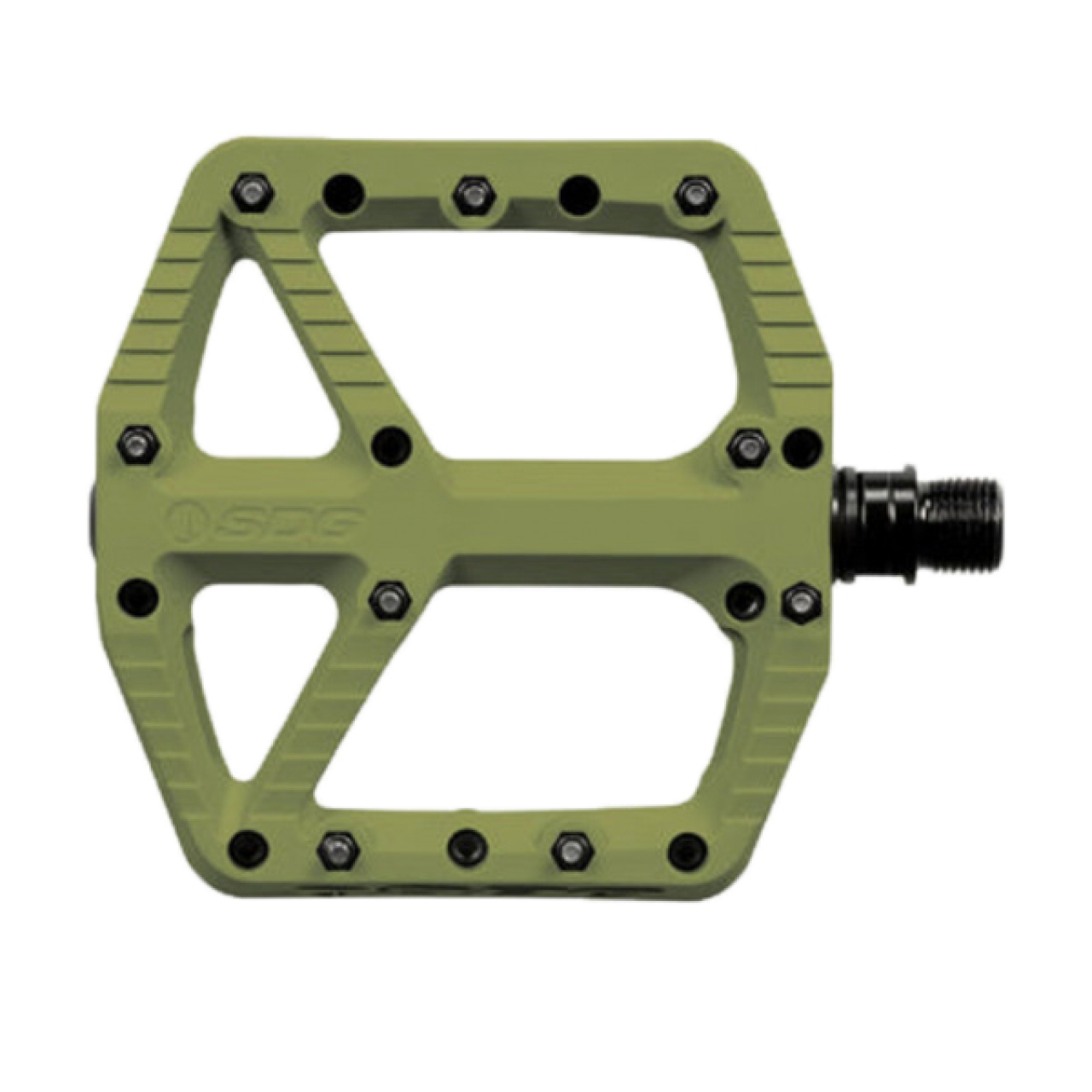SDG Composite - профессиональное решение для активного катания в MTB дисциплинах с постоянными прыжками и жесткими приземлениями. Станет отличным вариантом для для любителей кросс-кантри, трейла, фрирайда, дёрта и слоупстайла. Корпус педалей выполнен из крепкого нейлона. Собрана с использованием промышленных подшипников и втулки скольжения, что дает легкую плавность вращения и высокую устойчивость к влаге, пыли, грязи, ударным нагрузкам. Корпус фиксируется на Cr-Mo ось, выполненную с CNC обработкой и имеющую стандартную резьбу 9/16". Вес пары 380 грамм, высота профиля 17 мм, площадка размером 110 х 105 мм, имеет 18 сменных шипов на одну педаль. Оптимальный контакт и уверенную стойку на педалях получиться достичь при использовании специализированной, бесконтактной MTB обуви. Педали не комплектуются светоотражателями и в продажу поступают в различных цветах.